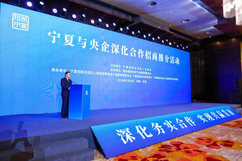 為接續精準發(fā)力,以“招大引強”助推全區經(jīng)濟高質(zhì)量發(fā)展,通過(guò)推介會(huì )塑造投資寧夏招商品牌,1月29日上午,由自治區人民政府主辦,自治區國資委、商務(wù)廳、駐北京辦事處承辦的,以“深化務(wù)實(shí)合作 實(shí)現共贏(yíng)發(fā)展”為主題的寧夏與央企深化合作招商推介活動(dòng)在北京舉辦?,F場(chǎng),全國48家央企110余位企業(yè)負責人在觀(guān)看《寧夏——祖國西部的一塊寶地》宣傳片后,我區各部門(mén)、各地市及寧東能源化工基地管委會(huì )圍繞營(yíng)商環(huán)境、重大產(chǎn)業(yè)及擬合作領(lǐng)域重大項目等,在分別進(jìn)行推介的同時(shí),聯(lián)袂向央企發(fā)出“邀請”。