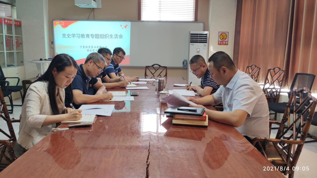 為深入推進黨史學習教育成果,8月4日,寧夏投資置業(yè)聯(lián)合黨支部召開黨史學習教育專題組織生活會,會議由聯(lián)合黨支部書記談文慶主持,集團黨委副書記、總經(jīng)理王勇以普通黨員身份參加會議,支部全體黨員參加本次會議。